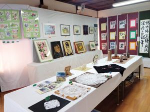 館内には、公民館活動で作られた作品や個人出品の方の力作がずらり。