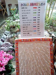 恒例の『お正月お年玉100本くじ』は、コーヒーキャラメルでしたが