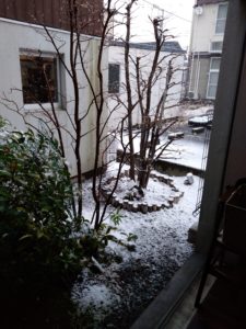 予報より早く、9時頃から雪が降り始め、辺りは雪景色に。