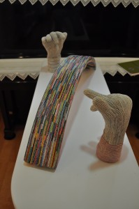 大量の新聞紙や様々な紙を素材として、平面、立体など、