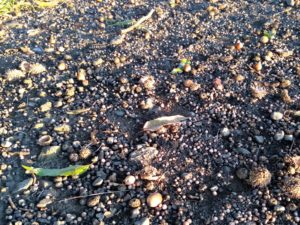クヌギの丸い実やかさがあちこちに散らばっていました。