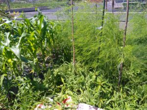 右側は、種子から育てている、3年目の『グリーンアスパラ』。