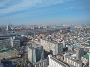 西には、荒川の緩やかな流れ、スカイツリーや都庁も見えました。