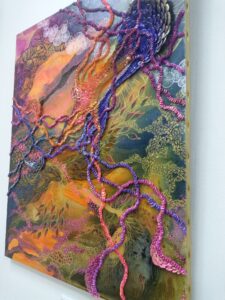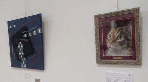 臨時休業をいただいて、かくれ文字絵作品が展示されている