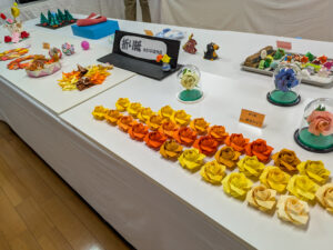 月一の例会で折りためた作品が展示されていました。
