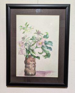先週の土曜日、ご自身の絵や絵皿の展示の様子を