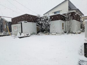 雪は、予想以上のペースで降り続いて、雪景色に。