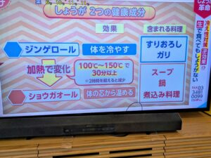 一昨日のNHK番組『あさイチ』で「しょうがパワー」特集をやっていました。