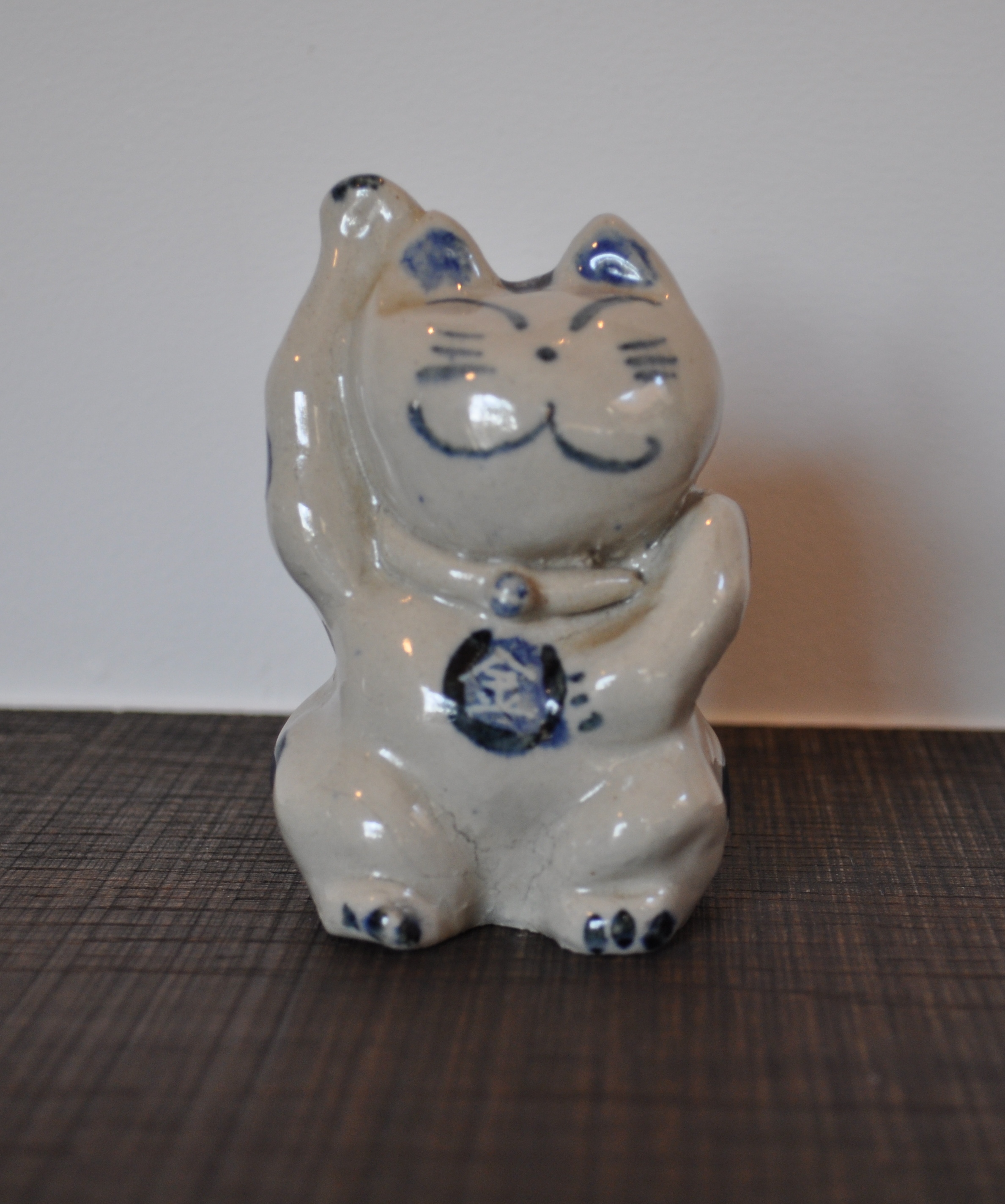 上の画像は、かくれんぼの新しい仲間「招き猫」(裏表に顔が描かれています)。