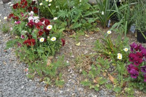 去年は花苗を移植したのでしたが、花の後こぼれた種たちが飛び散り、今年は「ここにも仲間がいるよ」と