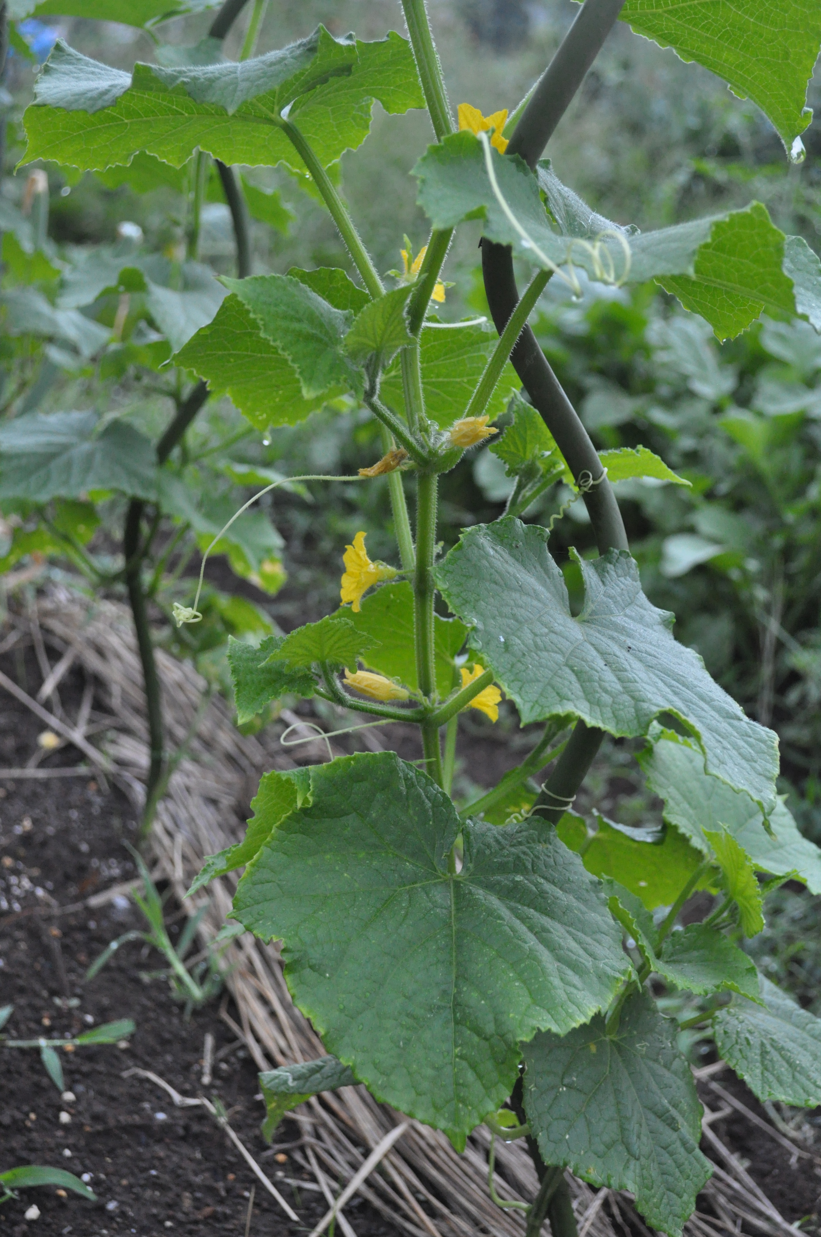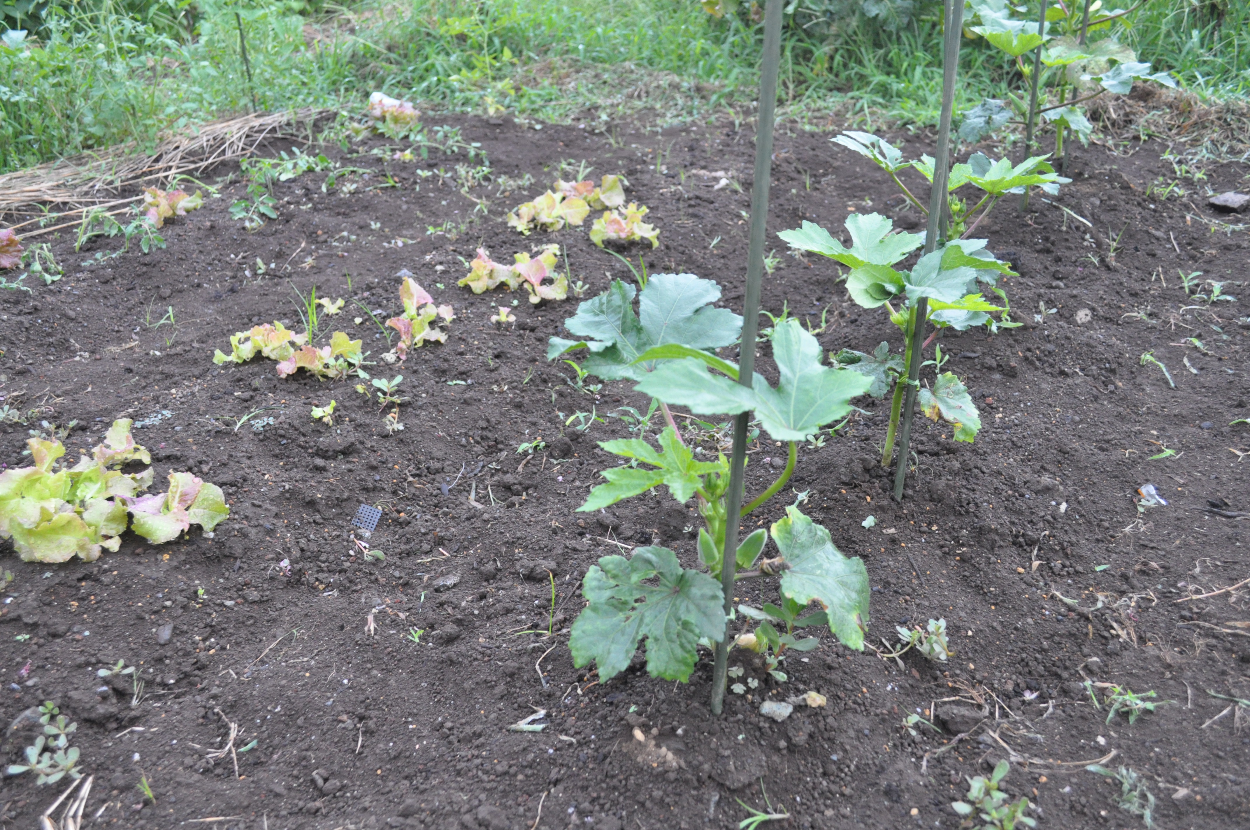 畑の野菜たちもひと安心。オクラは花が咲き、小さな実が付き始めています。