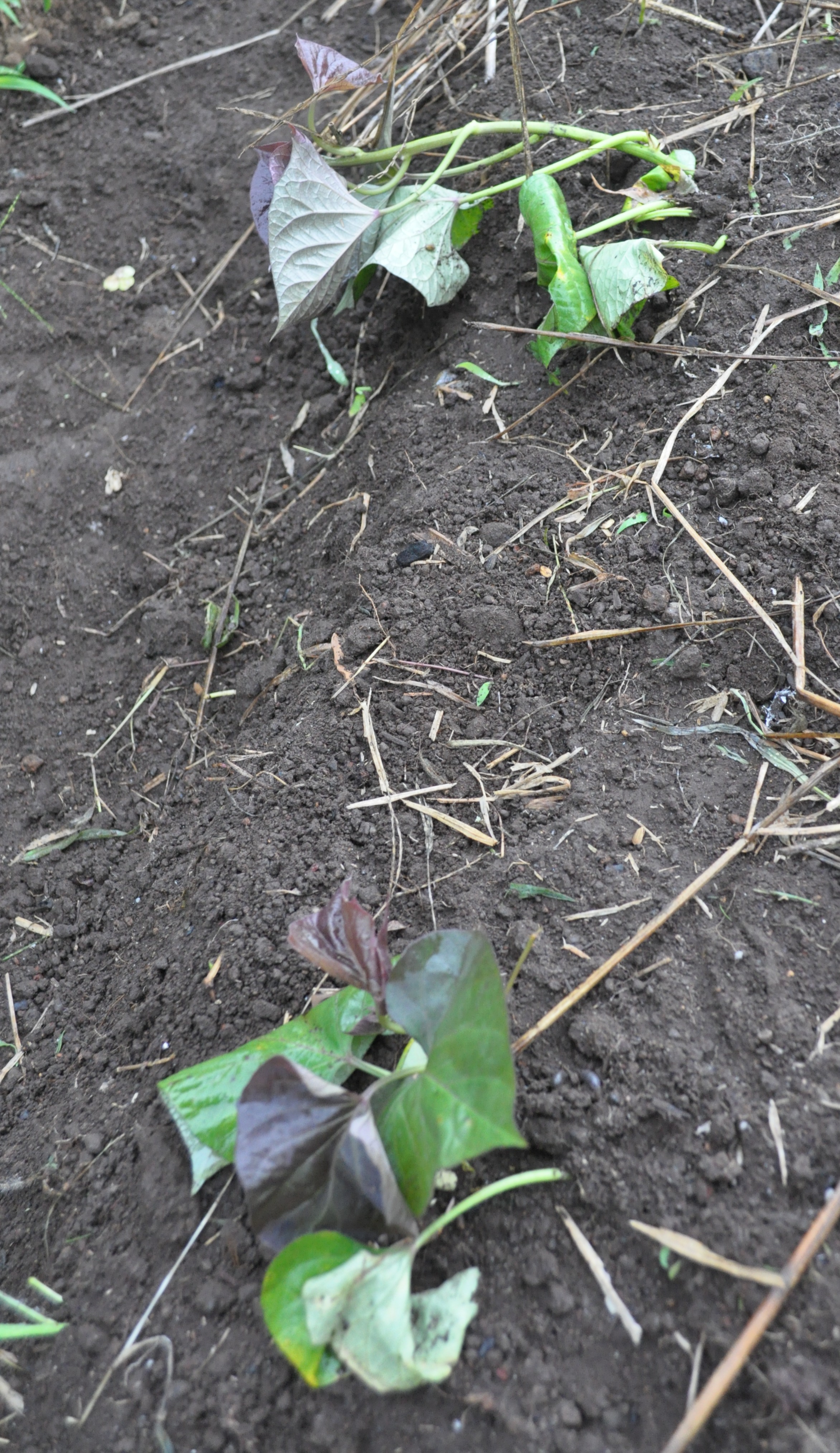 右は、お客様からをいただいた「安納芋(あんのういも)」の苗。