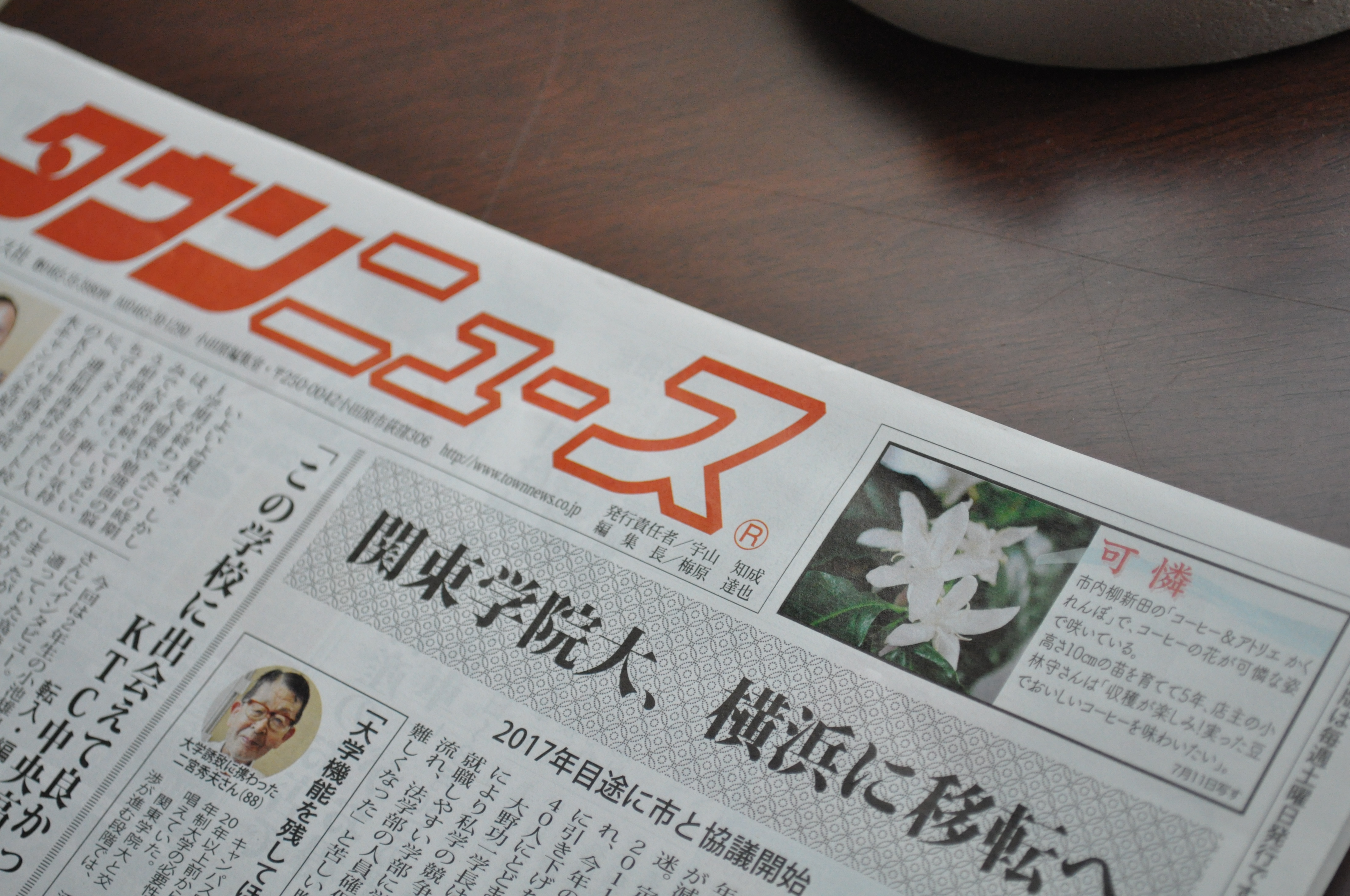 とお客様に教えられてタウンニュースを見直してみると、なんとトップ紙面の最上段に画像と記事が・・・。