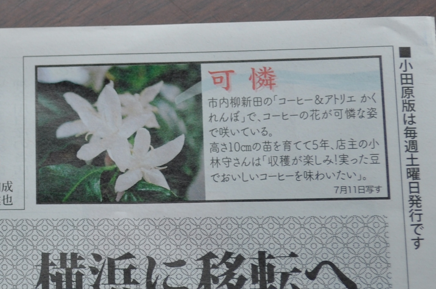 「コーヒーの花を観に来たのよ。タウンニュースに出ていたじゃない?」