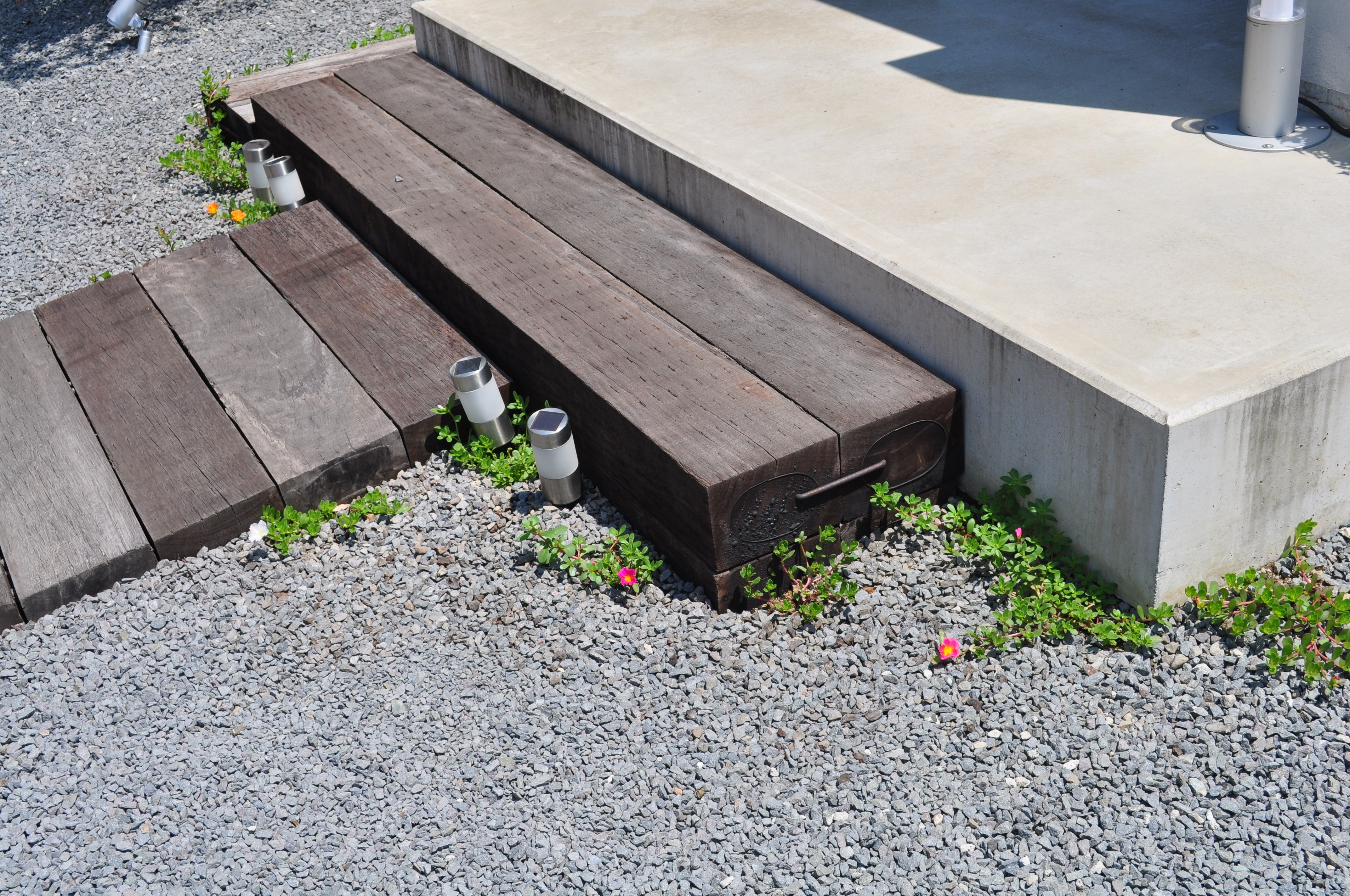 挿し芽をしておいたポーチュラカを枕木の脇に