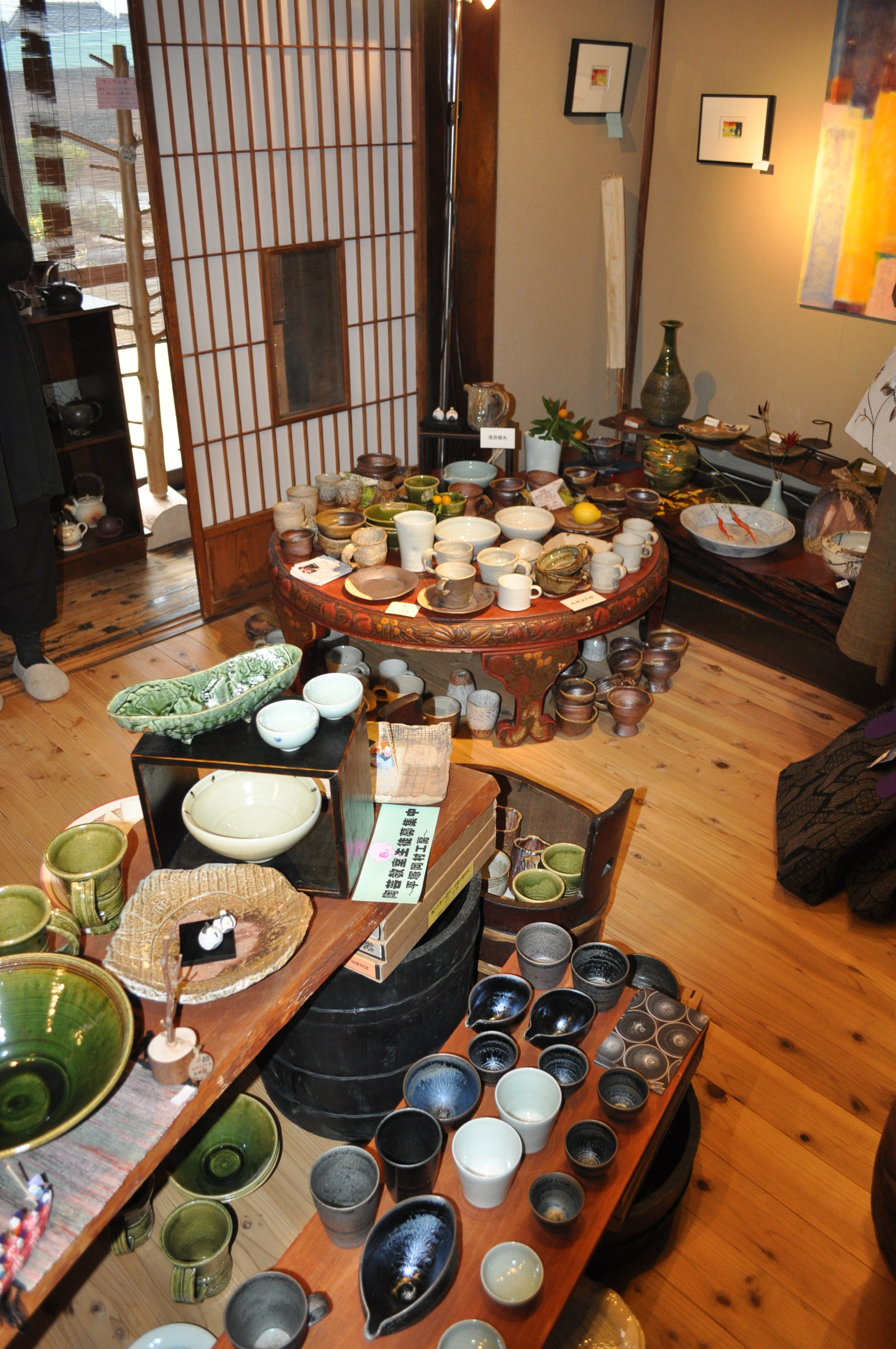 毎年のことながら、古民家の土間部分や座敷いっぱいに、いろいろな作家さん達の力作が展示されていて、