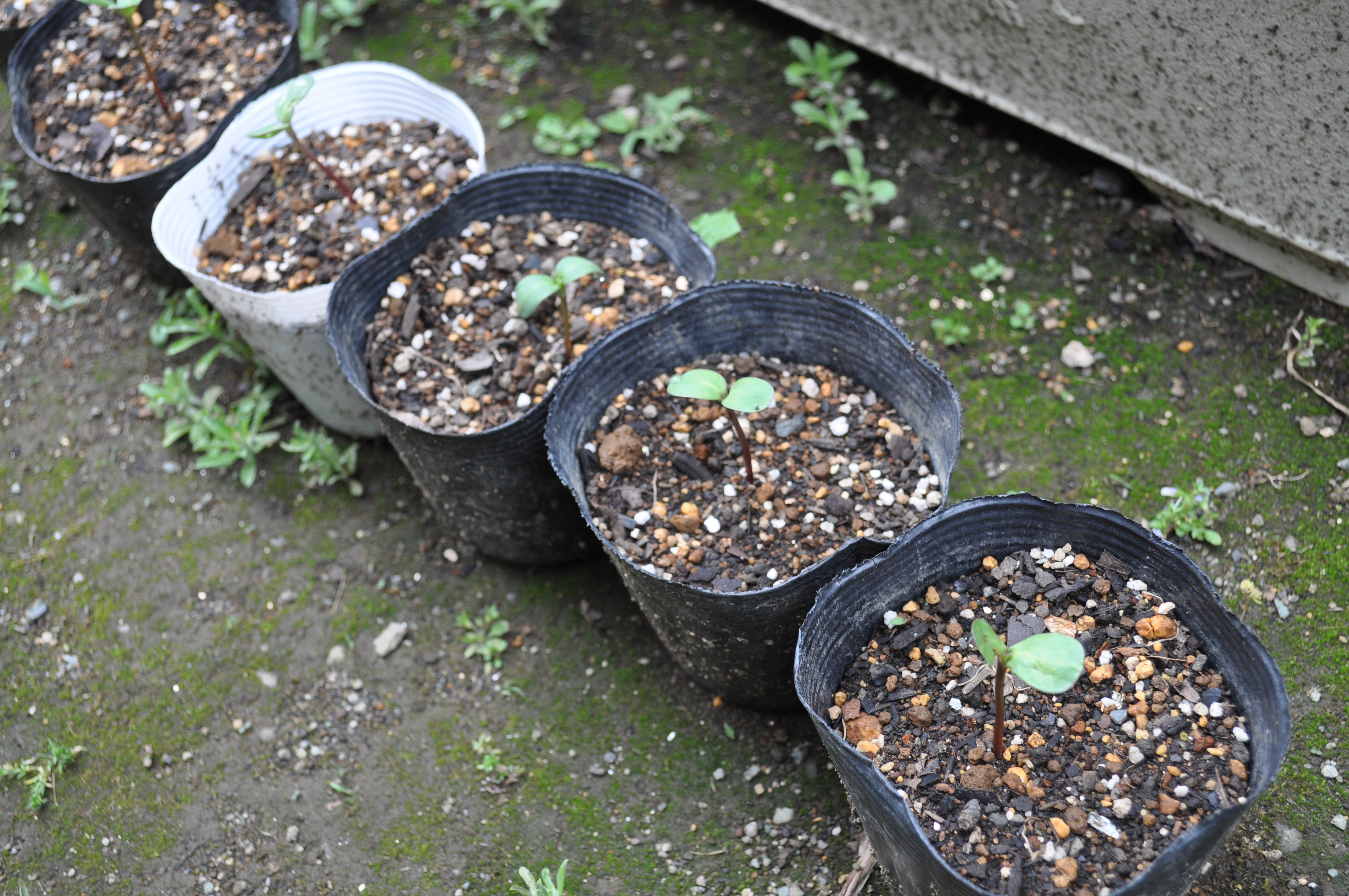 種を蒔いておいた朝顔とヒマワリが芽を出し、日々大きくなっています。