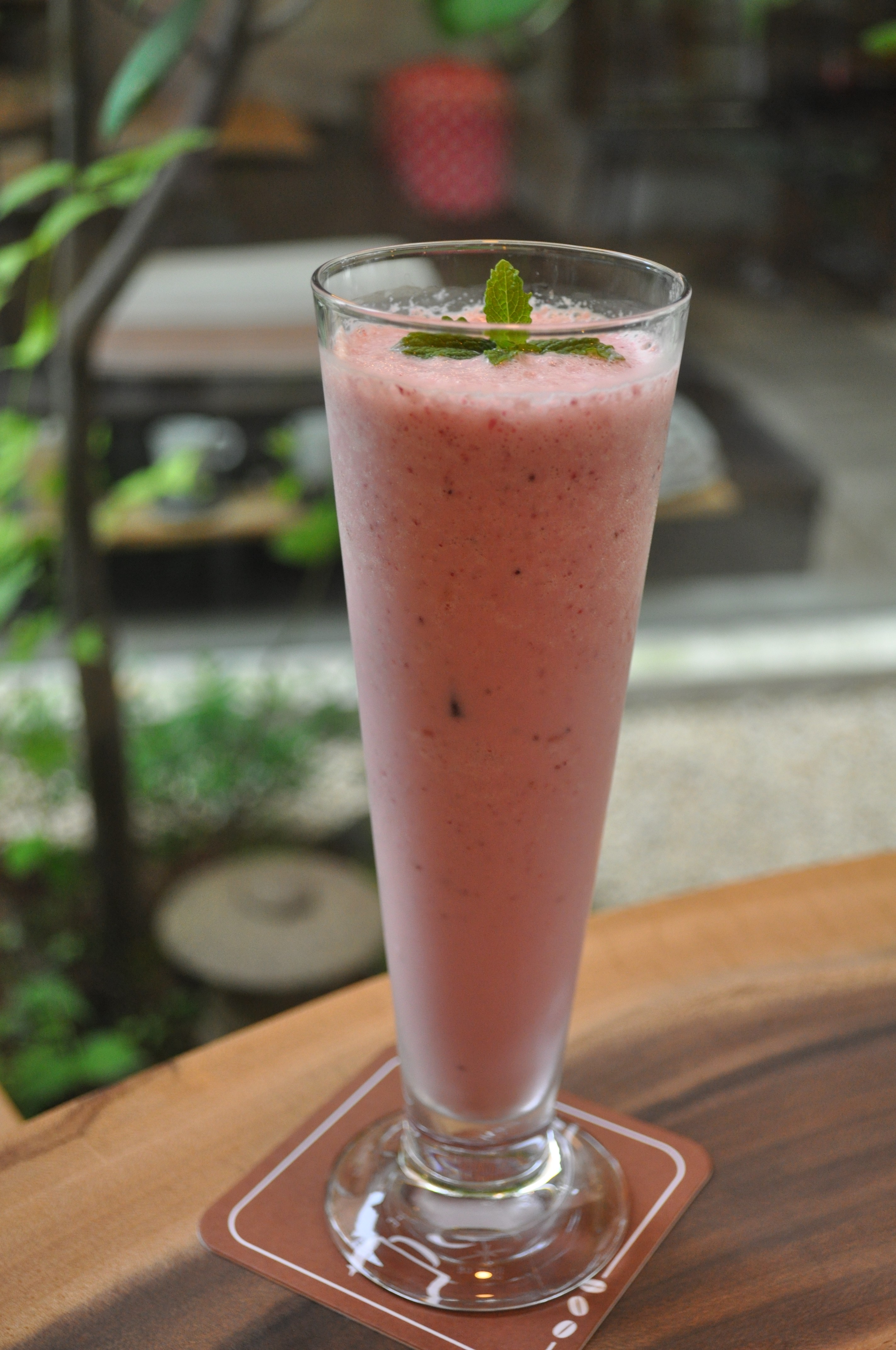 冷凍したイチゴに牛乳、アイスを加えただけの