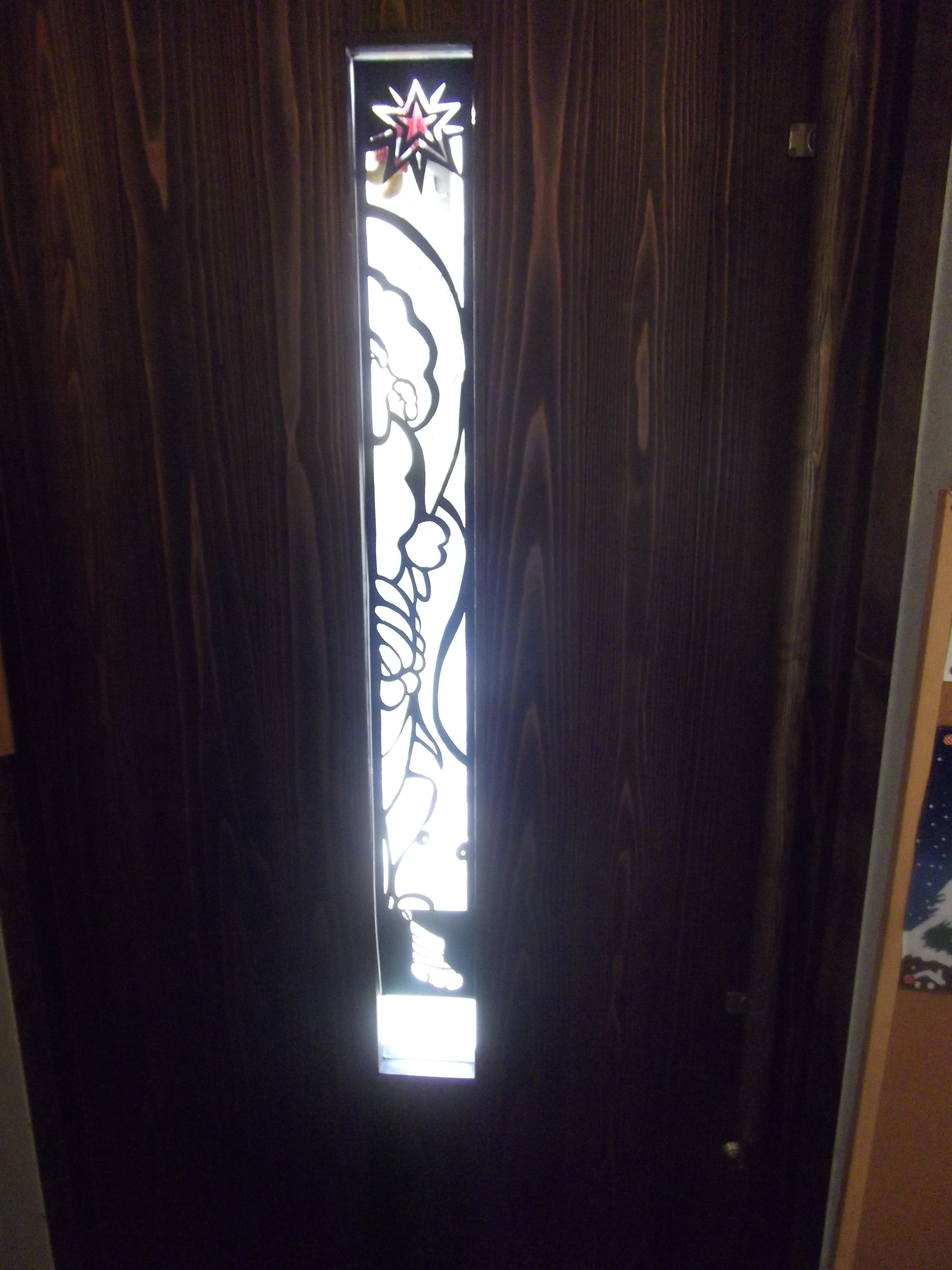 狭いガラス部分にモザイク模様(?)の光が