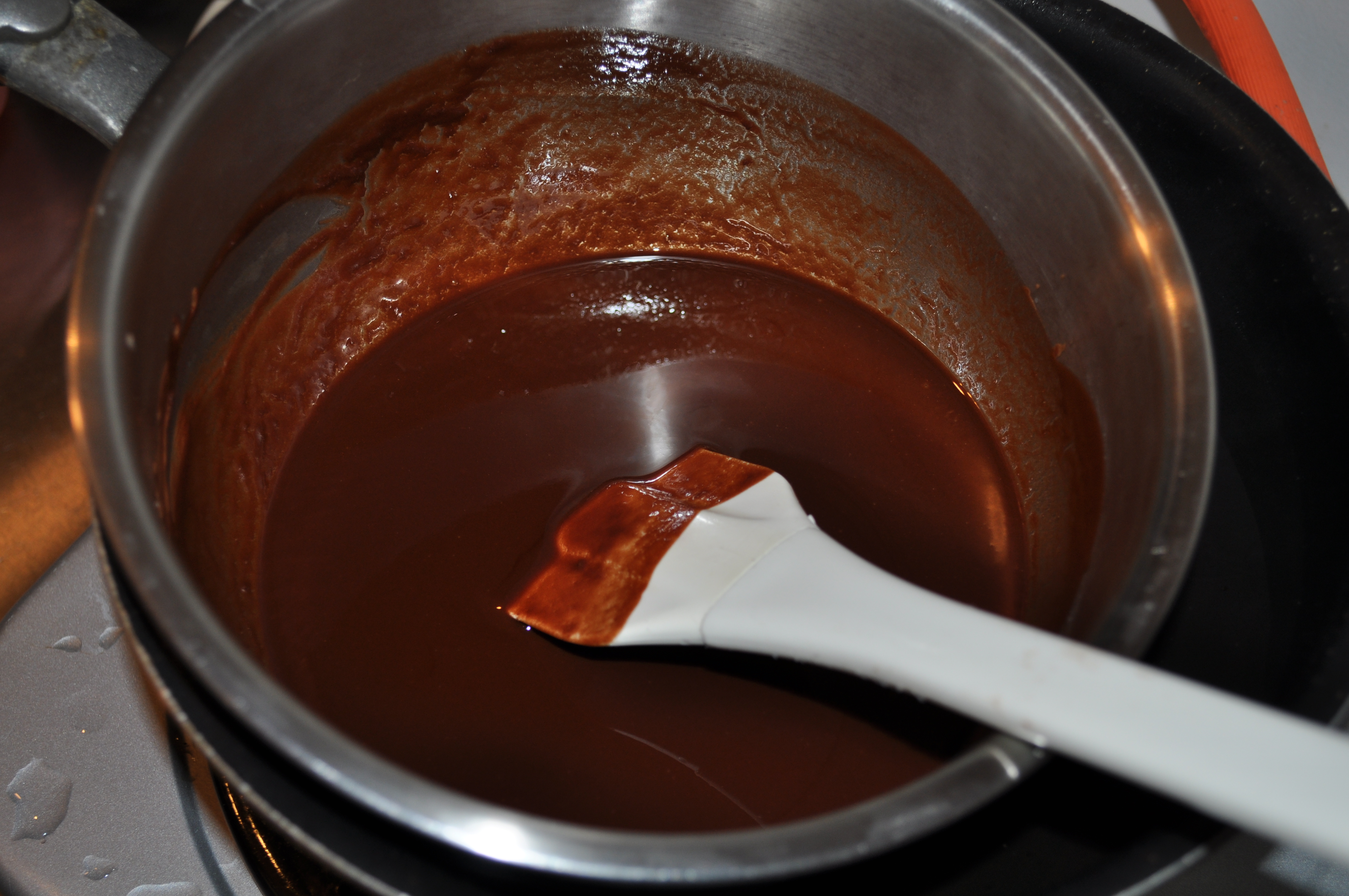 溶けたチョコレートにこれまた70℃に温めた牛乳を入れて乳化。