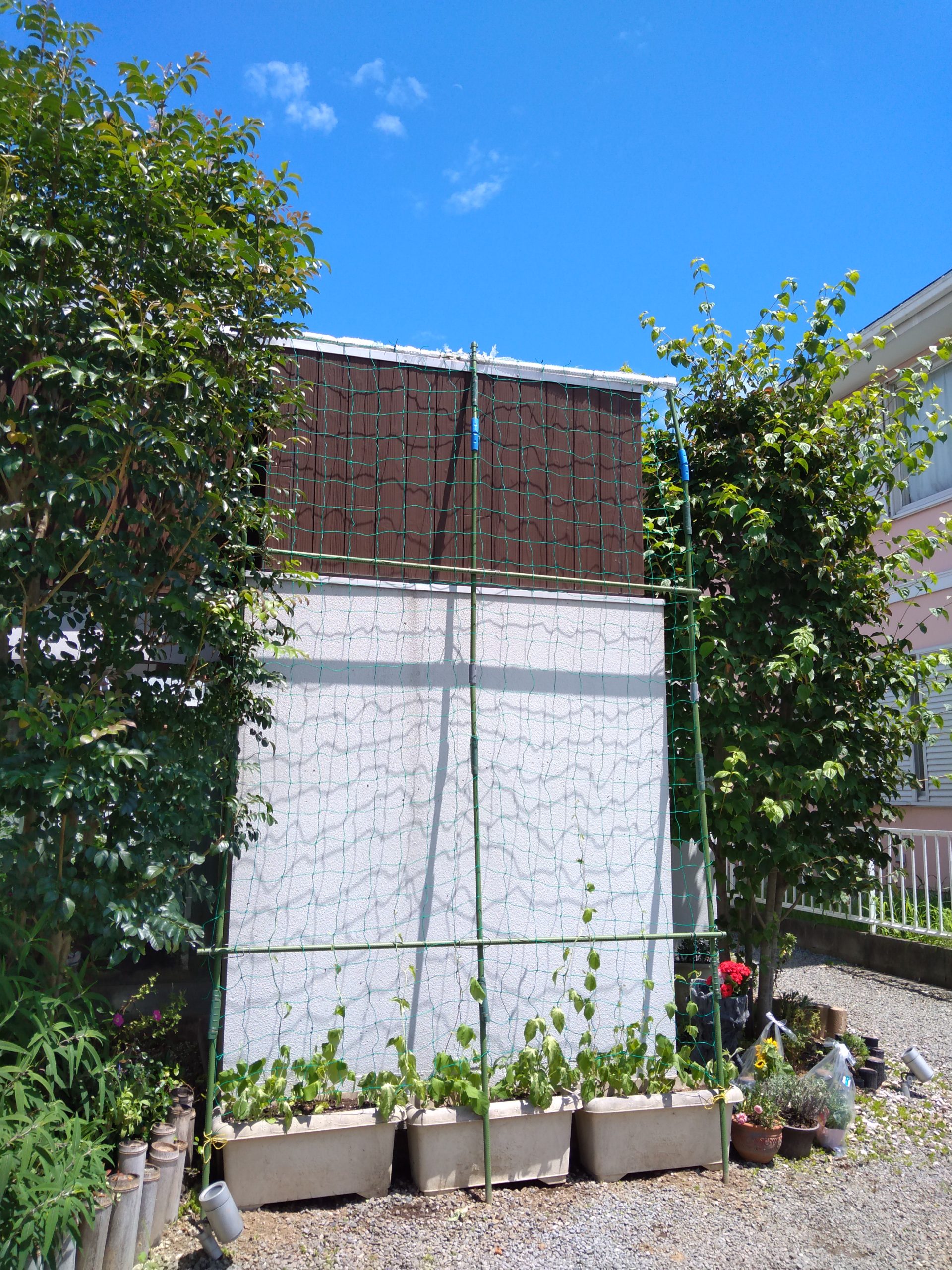これからアサガオの葉や花が増えて「りっぱな棚」に