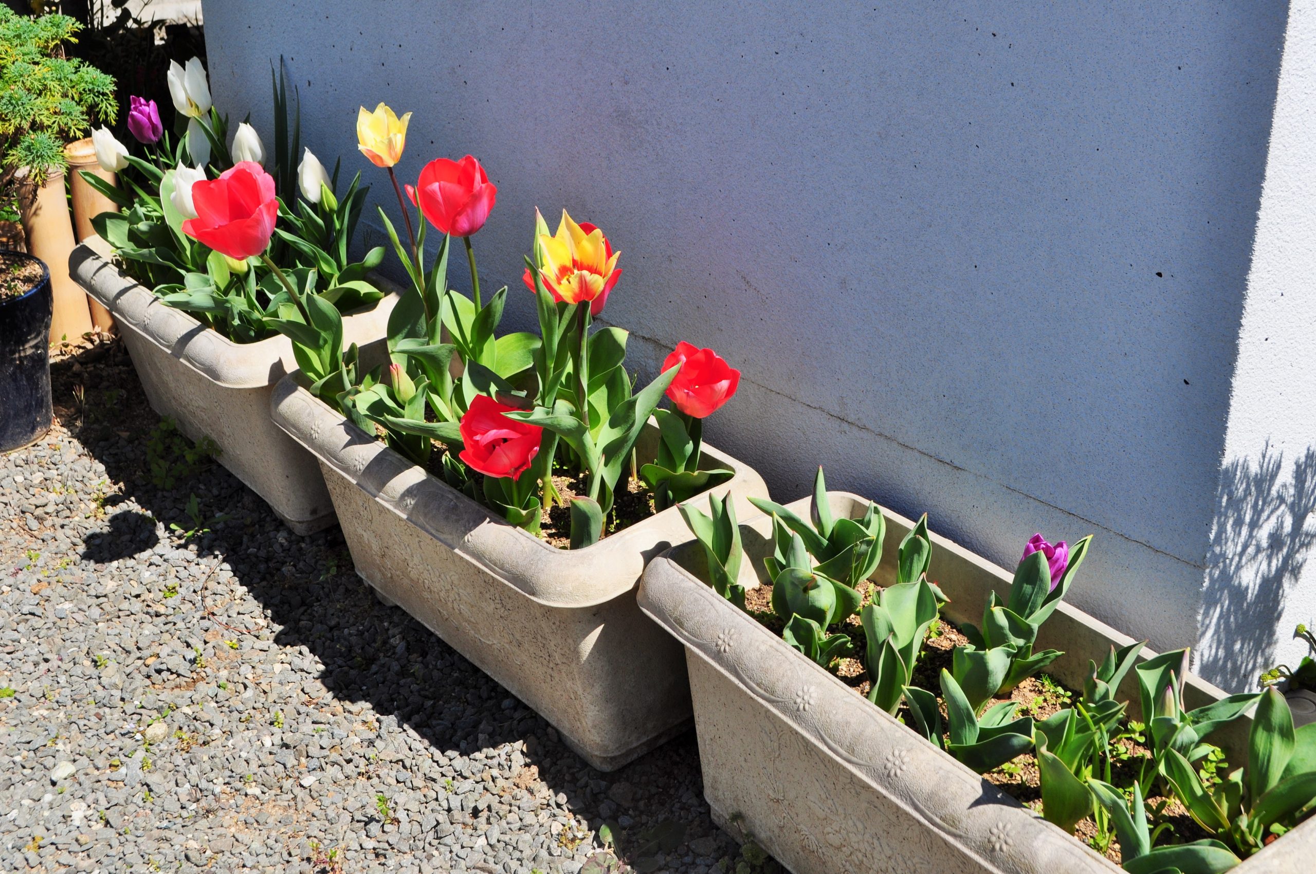 プランターに埋めておいた『チューリップ』が咲き始めました。