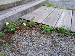 入り口付近の『ビオラ』だけでなく、あちこちでいろいろな植物が芽を出し、花を咲かせています。