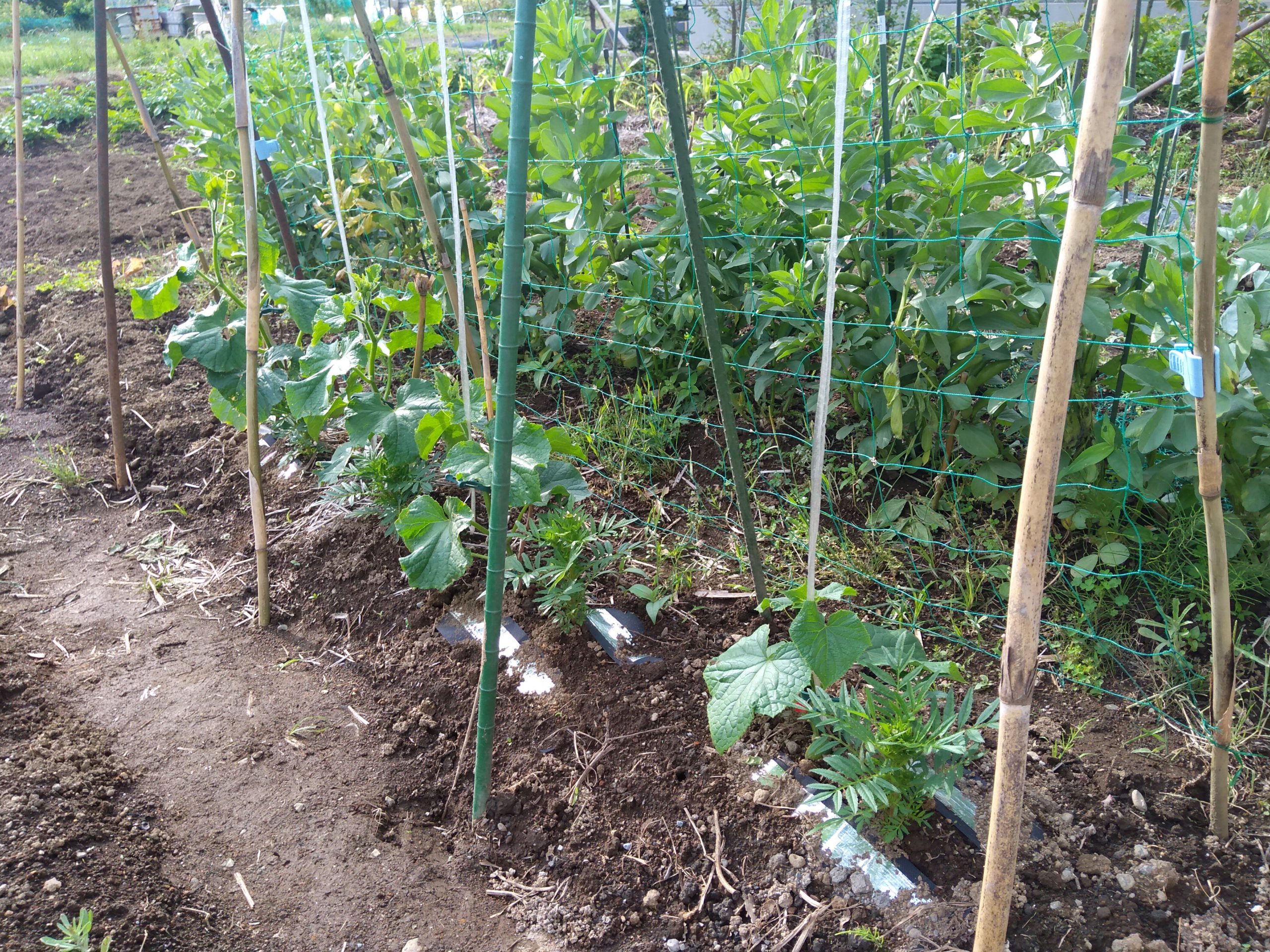 「マリーゴールド」や反射テープを植えこんで