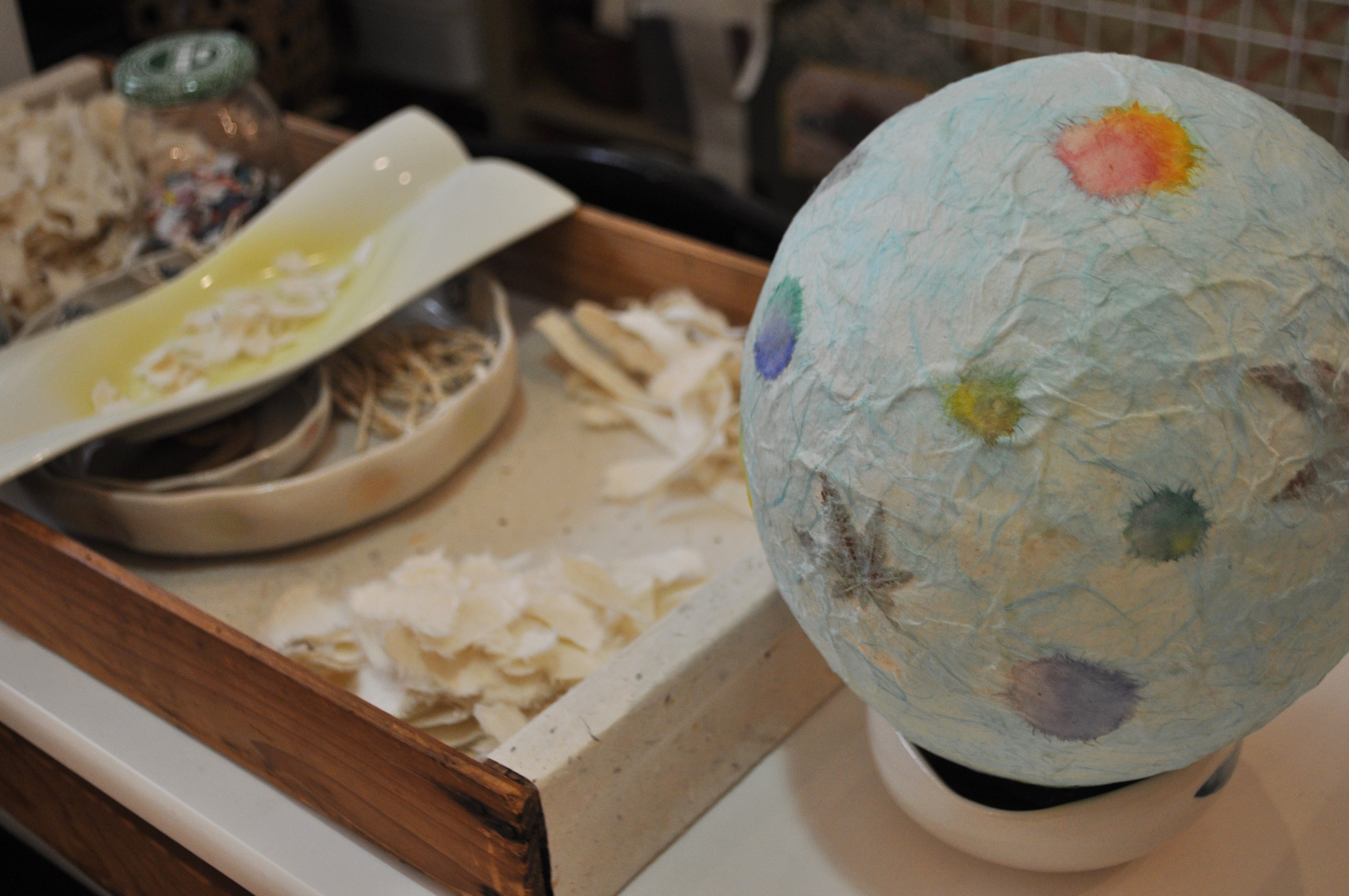 小さくちぎられた厚さ・形の違った和紙が素材。