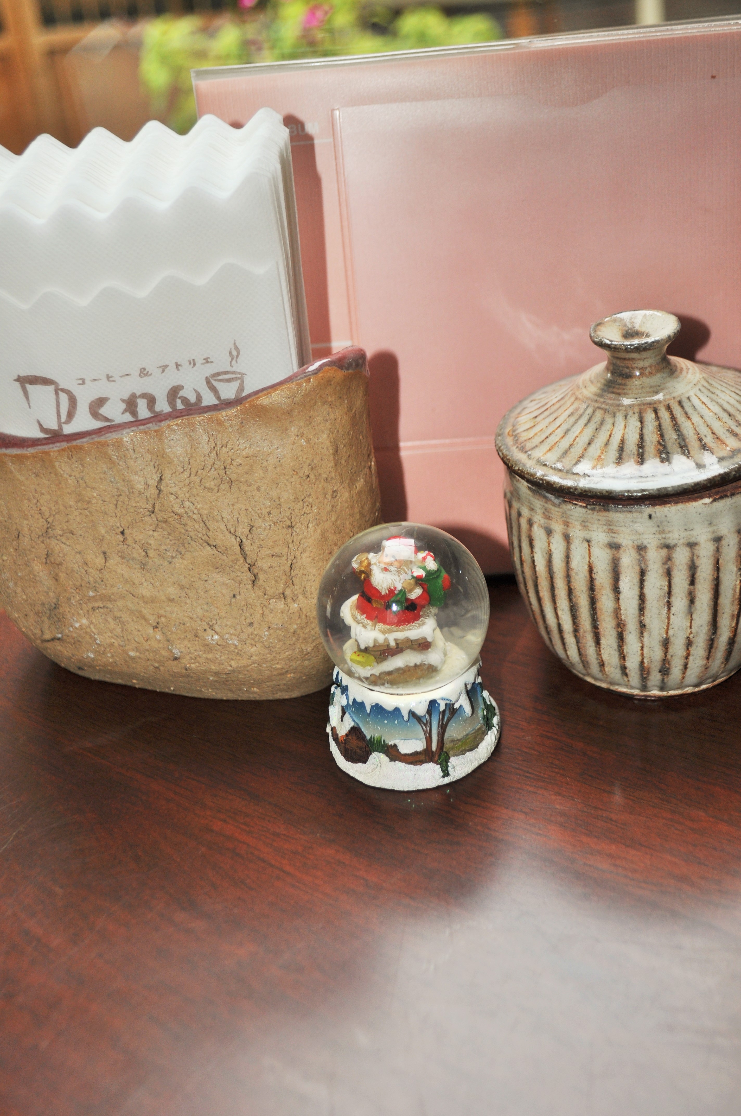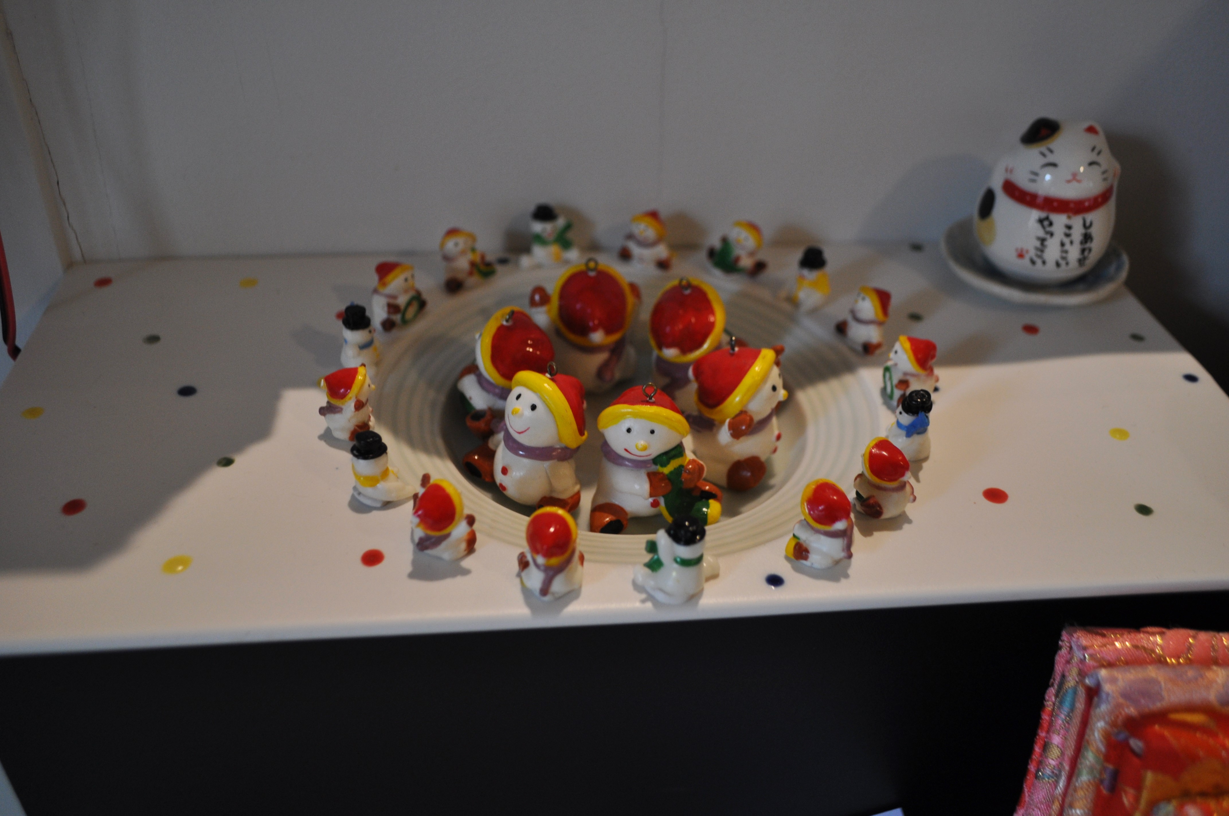 レジ付近には、美濃焼のお皿の上に小さな小さな雪だるまが円陣を組み、
