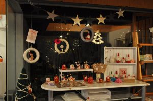 羊毛フェルトで作られたサンタさんなどかわいい作品が