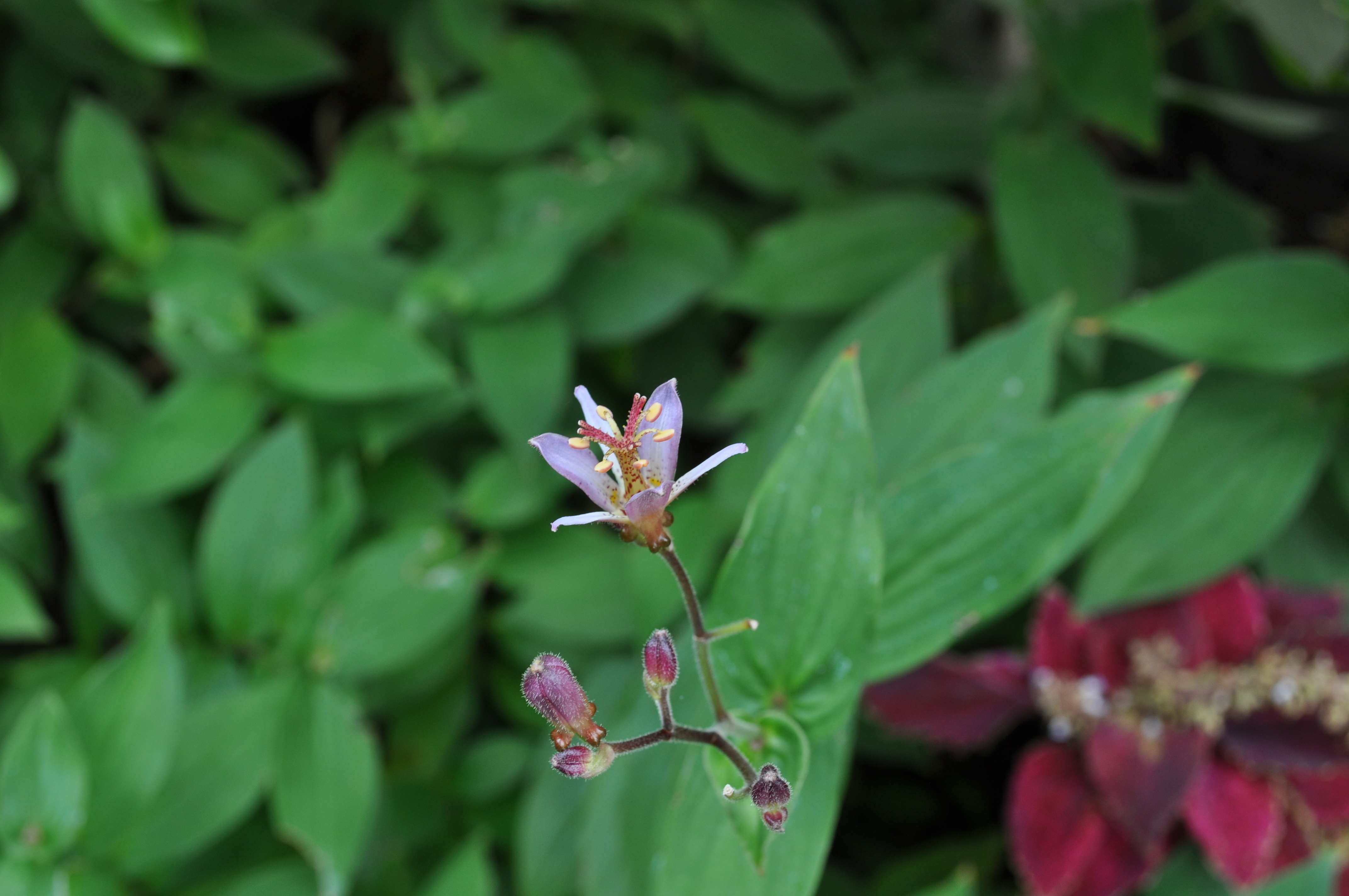 【同じ茎から 微妙に違った色の花を咲かせる。まさに色の”七変化”。 実も、緑→青→黒、と変化】