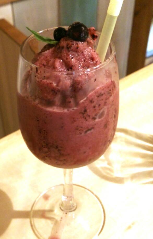 かくれ文字絵作家は、ブルーベリーのスムージー。