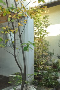 中庭の「セイヨウザイフリボク」は、