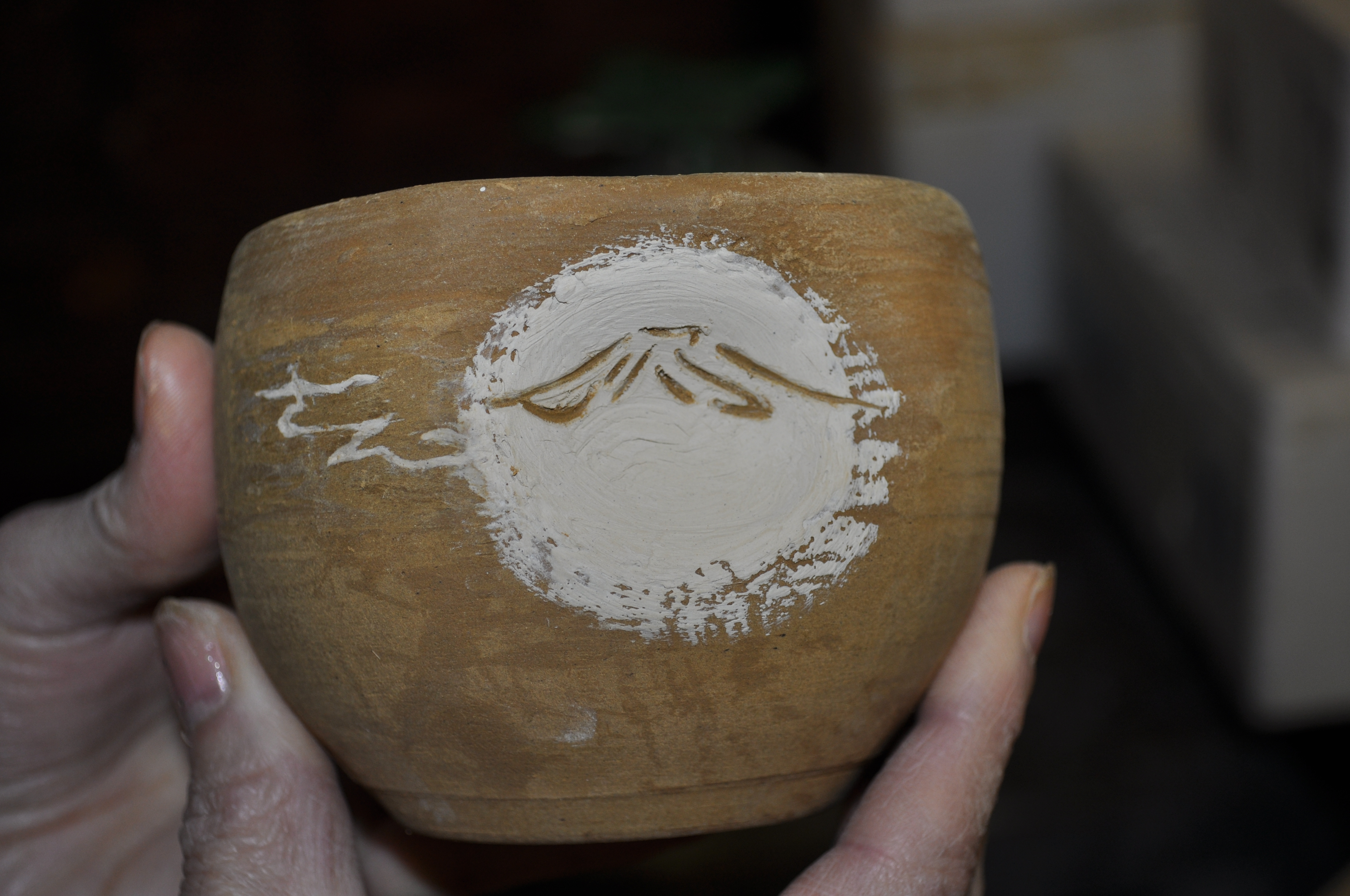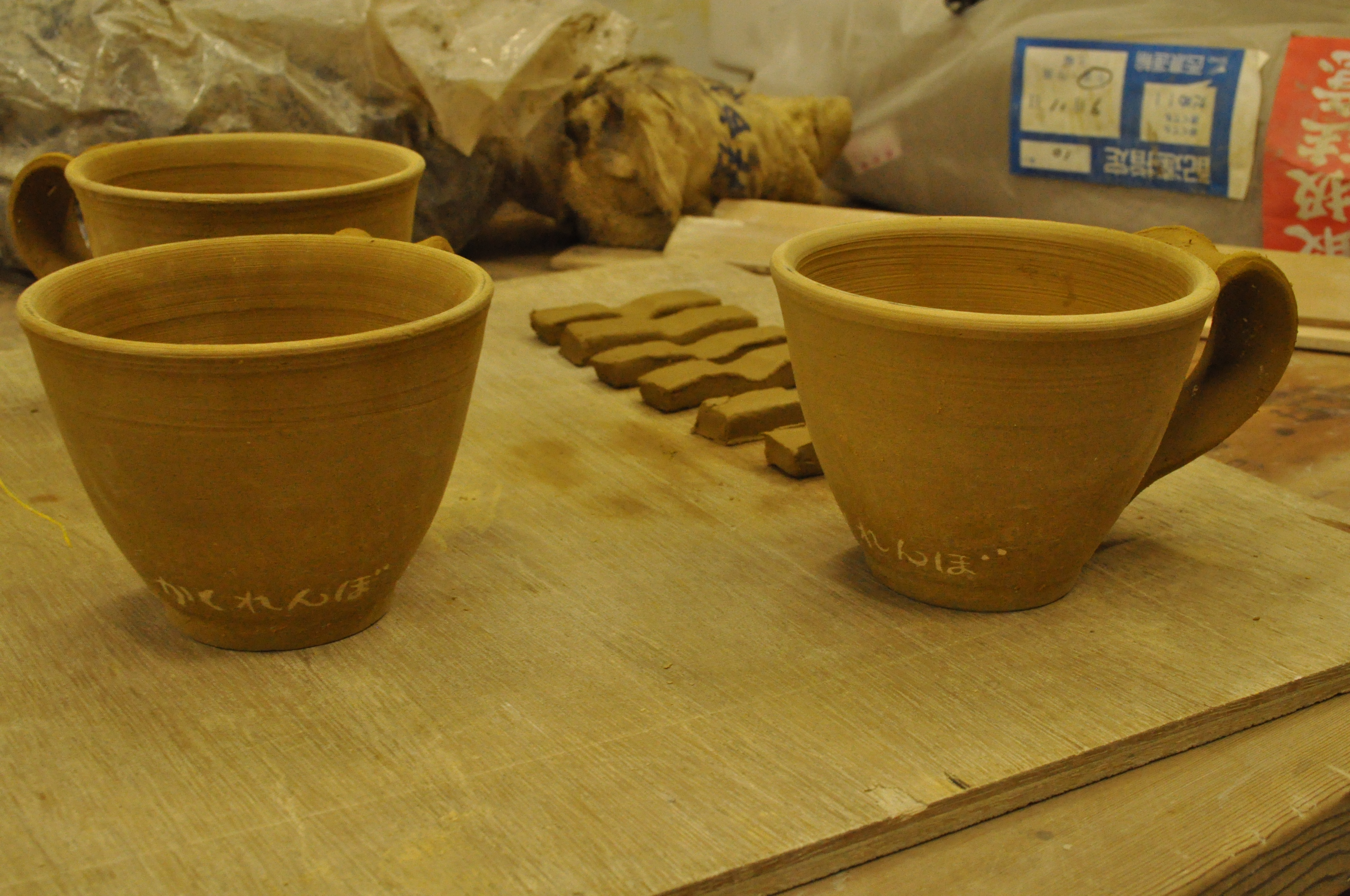 私たちは、素焼きの済んだカップへの