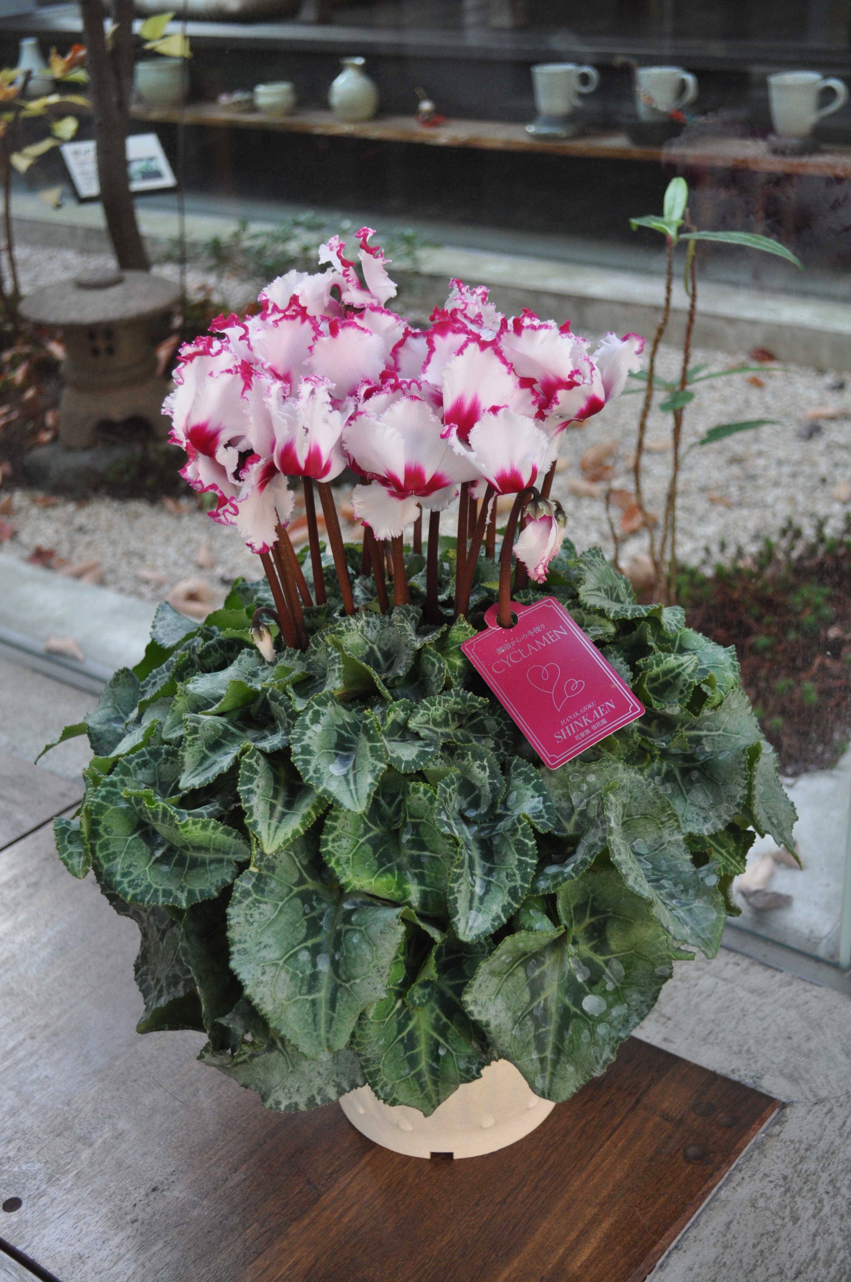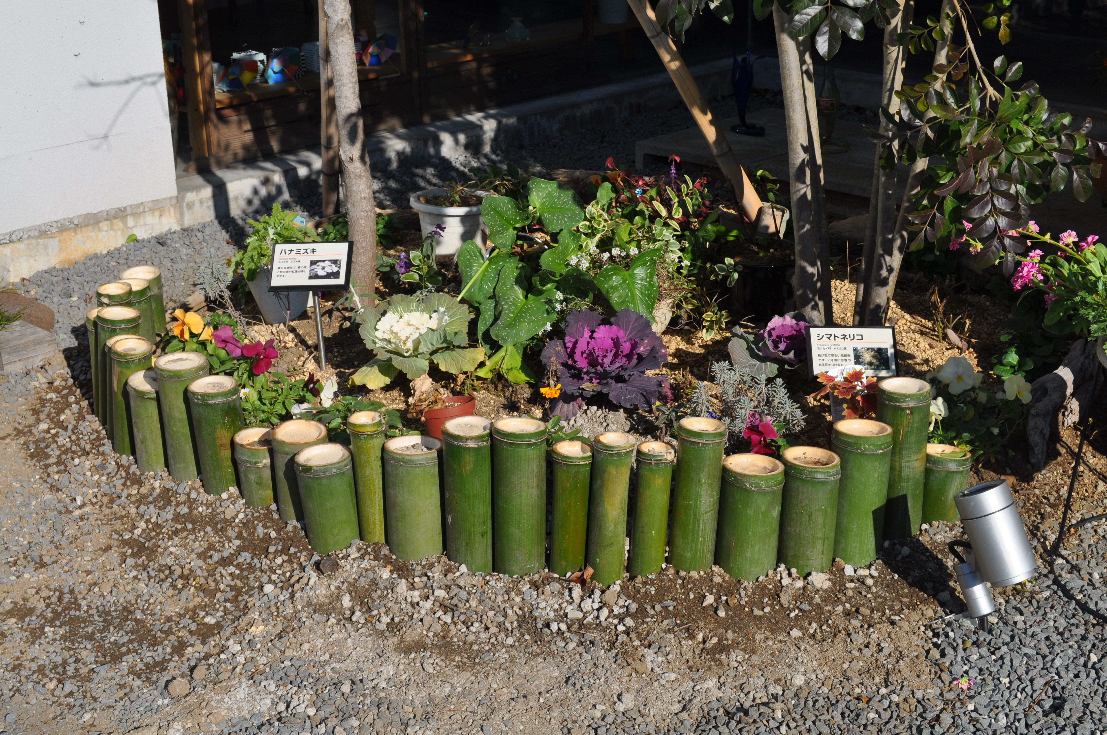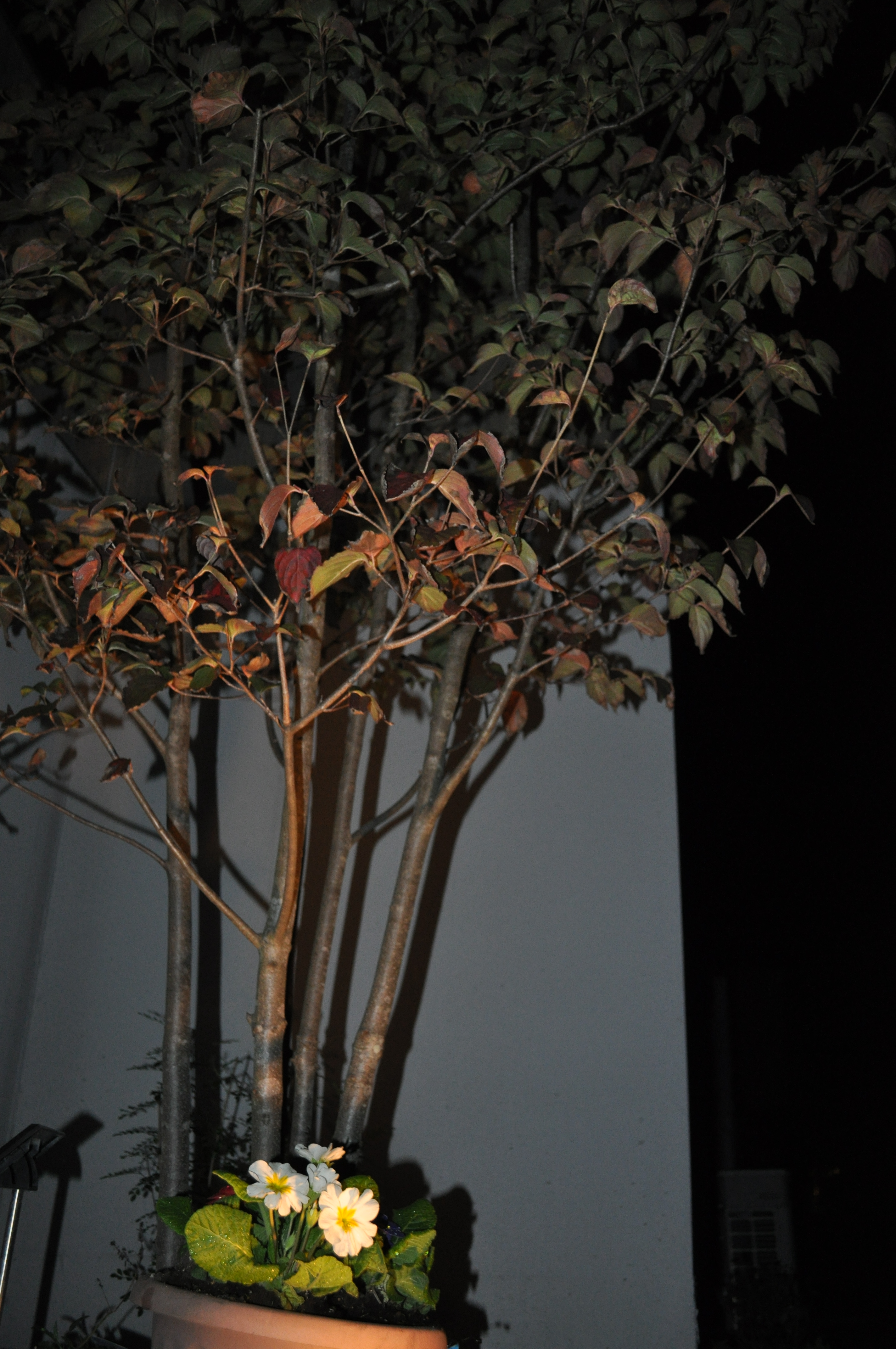外のヤマボウシの木の下に鉢が置いてあります。