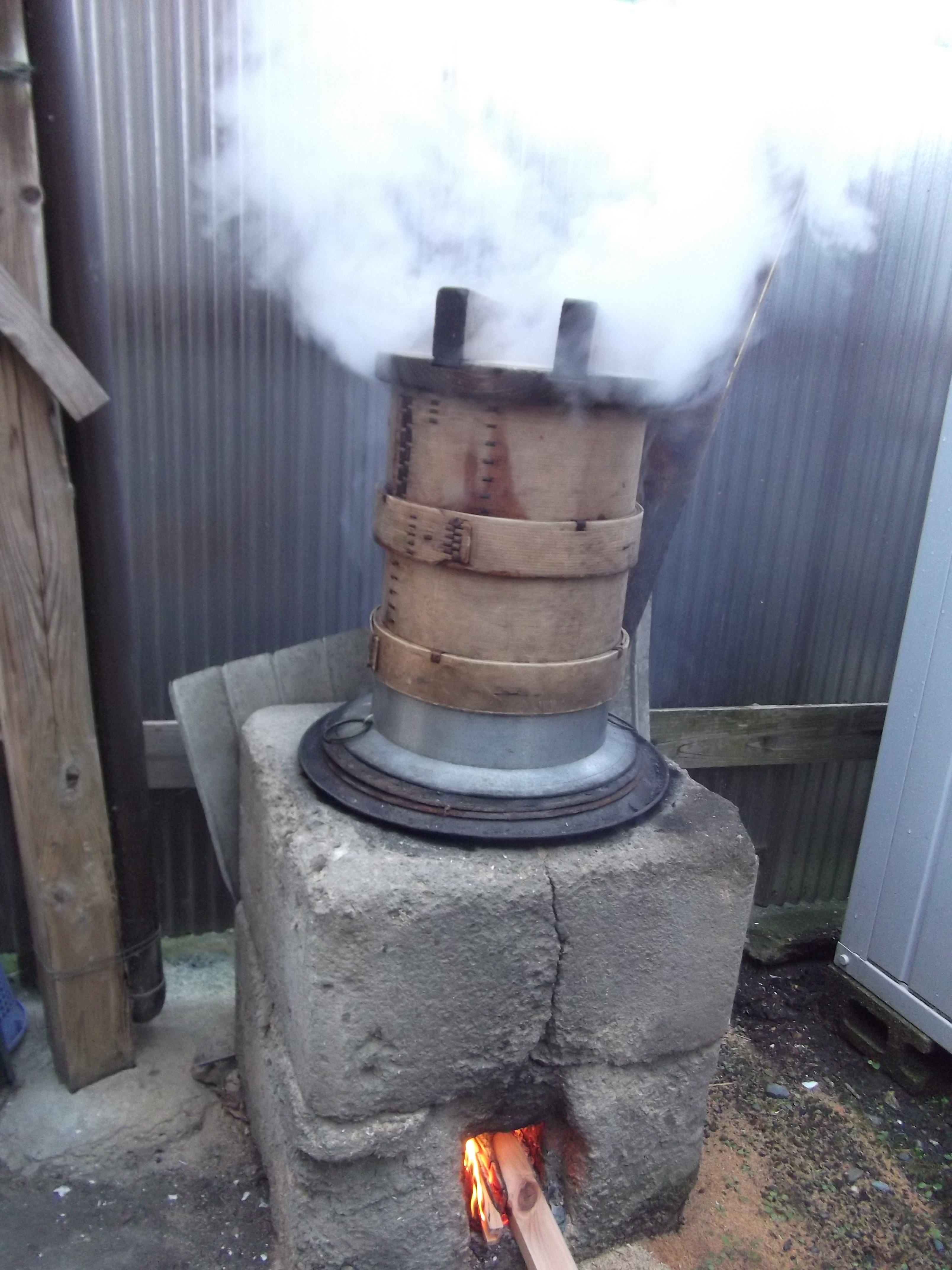 100年近くも使っている骨董品級の石製かまどを使います。