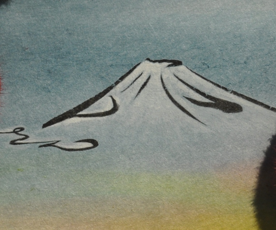 「ふじさん」というひらがなで富士山を描いた上の作品。